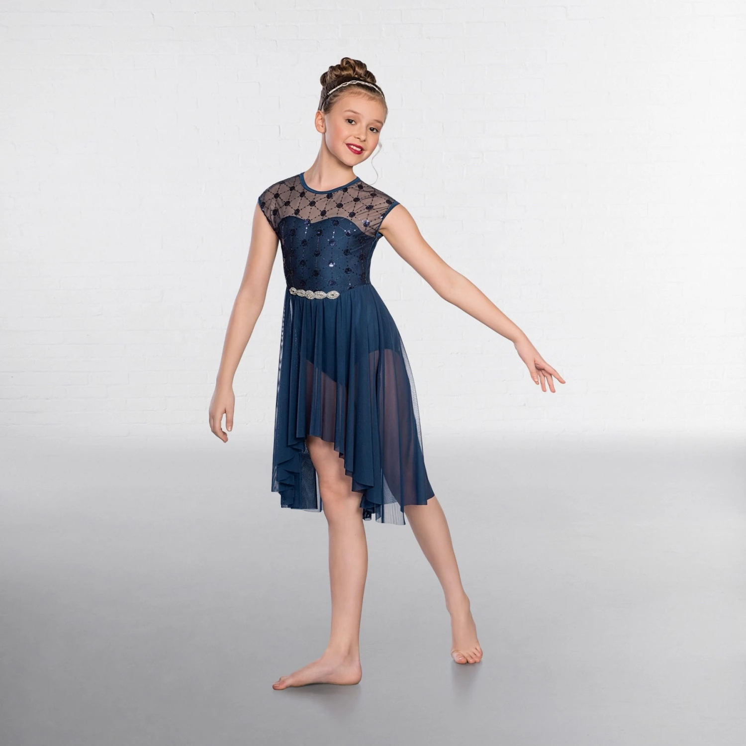 Put on a performance worthy of this stunning 1st Position geometric mesh lyrical dress. Perfect for contemporary and lyrical dance.