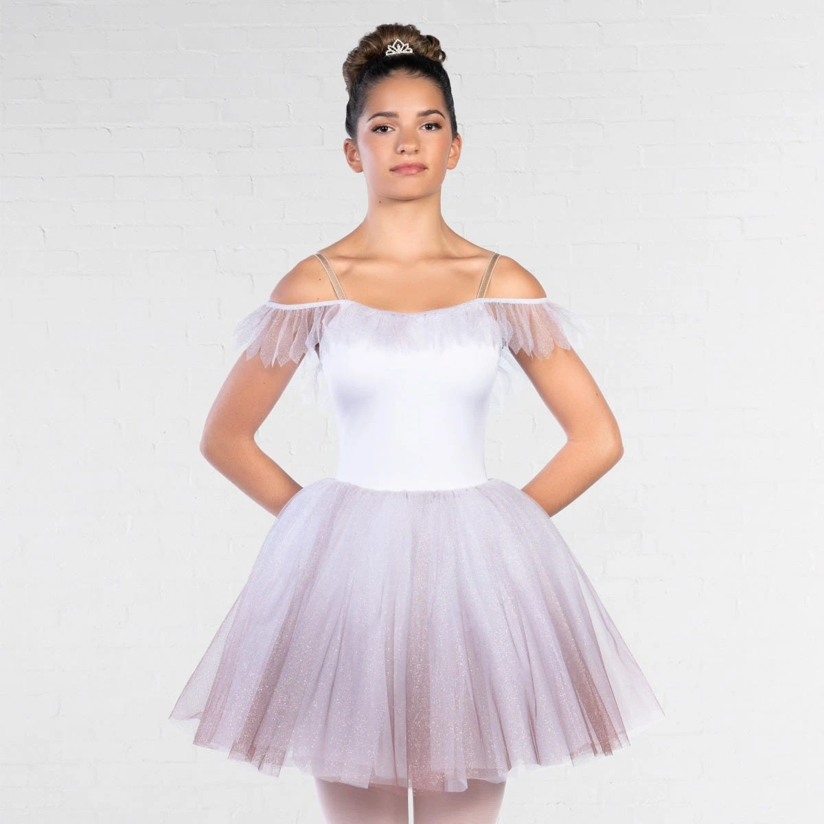 Your turns catch the eye in this flowy tulle skirt with a top layer of sparkle glitter tulle.