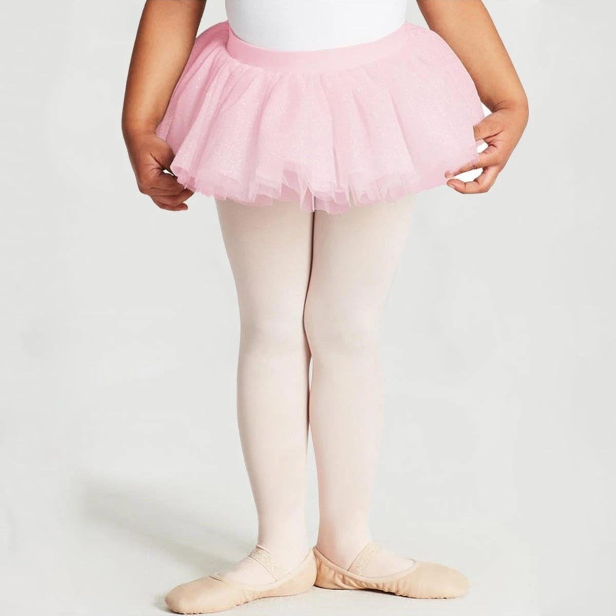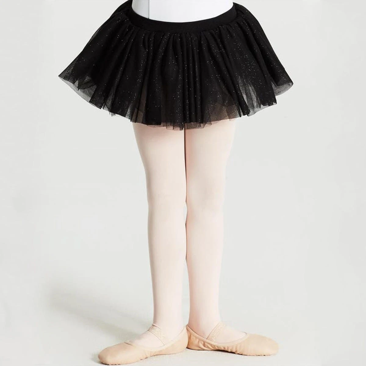 - Three layer tutu skirt with the top layer composed of glitter mesh