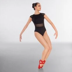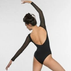 1st Position Sweetheart Neck And Mesh Long Sleeve Fashion Leotard Black