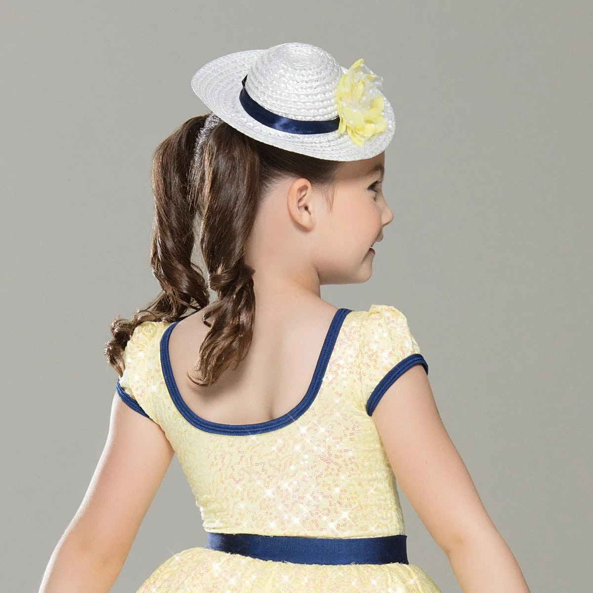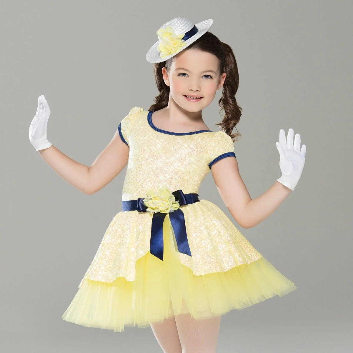 * Fully lined sequin spandex leotard with spandex sleeves, neckline, and waistband has attached flower and satin bow at the waist