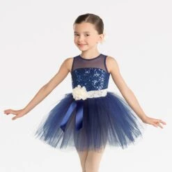 * Attached tulle skirt is layers of navy over two further layers of ivory tulle